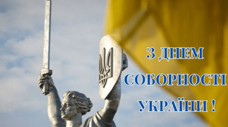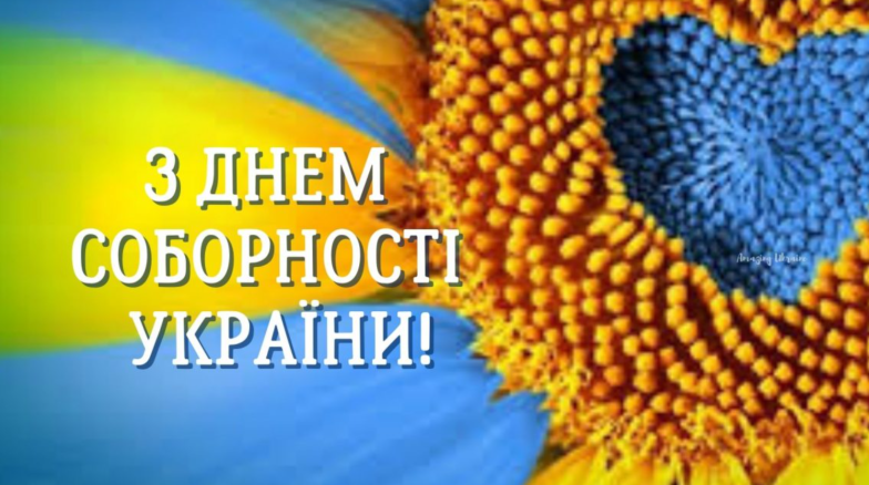 З Днем Соборності України! Це свято є символом нашої єдності, сили та незламності. В історії нашої держави цей день став важливим етапом на шляху до незалежності. Нехай серце кожного з нас відчуває гордість за рідну землю, а наша єдність та любов до батьківщини надихають на нові звершення. Бажаю мирного неба, процвітання та щастя кожній родині, а нашій країні — стабільності та миру.
