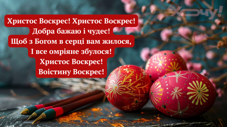Христос Воскрес! У цей благословенний день бажаю вам багато радості та щастя, укріплення віри та кращого майбуття! Живіть у мирі та злагоді зі своєю родиною та близькими, ніколи не зневіряйтесь і завжди знаходьте привід для хоч і маленької, але радості!
