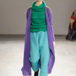 Свитера и кардиганы крупной объемной вязки, напоминающие средневековые латы и кольчуги, аксессуары, в виде цепей и орденов, и конечно же динамичная бахрома. Преобладание ярких цветов точно не даст заскучать: хаки, белый, черный, лиловый, фиолетовый, морковный, мята, изумруд, красный, синий.