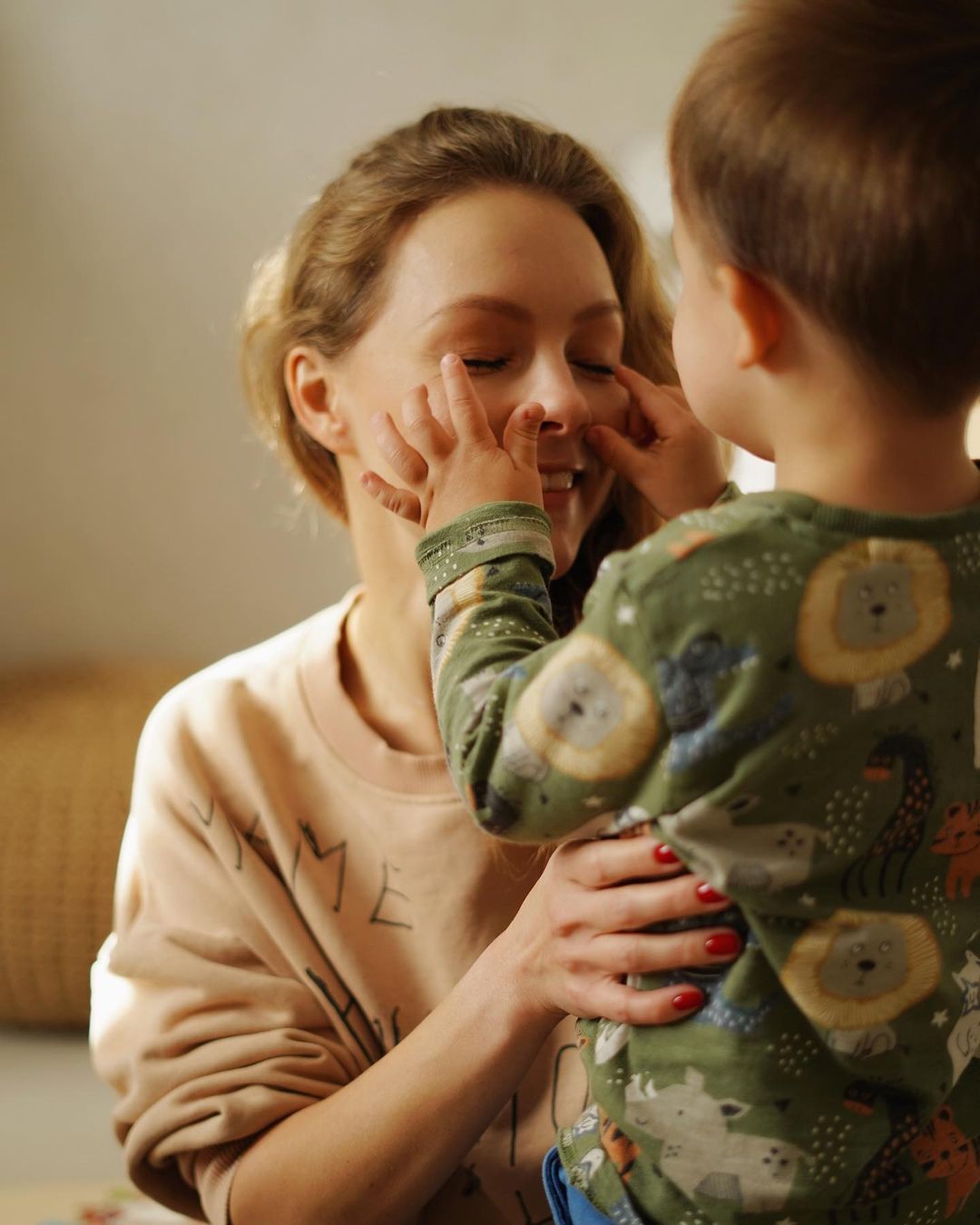 "Одно из первых слов, которое сказал мой сын, было слово "мыть". Неудивительно, конечно, учитывая сколько раз в день мы моем руки. Но смешит меня другое. Каждый раз, когда я вся такая красивая, с ярким макияжем, возвращаюсь домой со съемок или выступлений, он смотрит на мое лицо и первое, что я слышу от сына: "Мама, мыть". Приходится идти и вместе смывать макияж. И вот я теперь не знаю — это ему нравится естественная женская красота или я просто неудачно накрасилась?", — смеется Алена.
