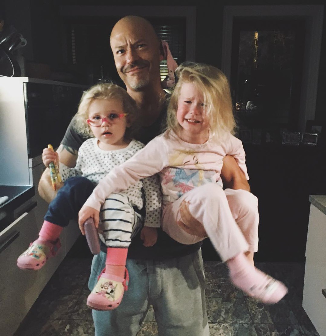Знаменитый дедушка выглядит счастливым на снимке вместе с 3-летней Маргаритой и 2-летней Верой. Девочки сидят на руках у Федора и балуются.