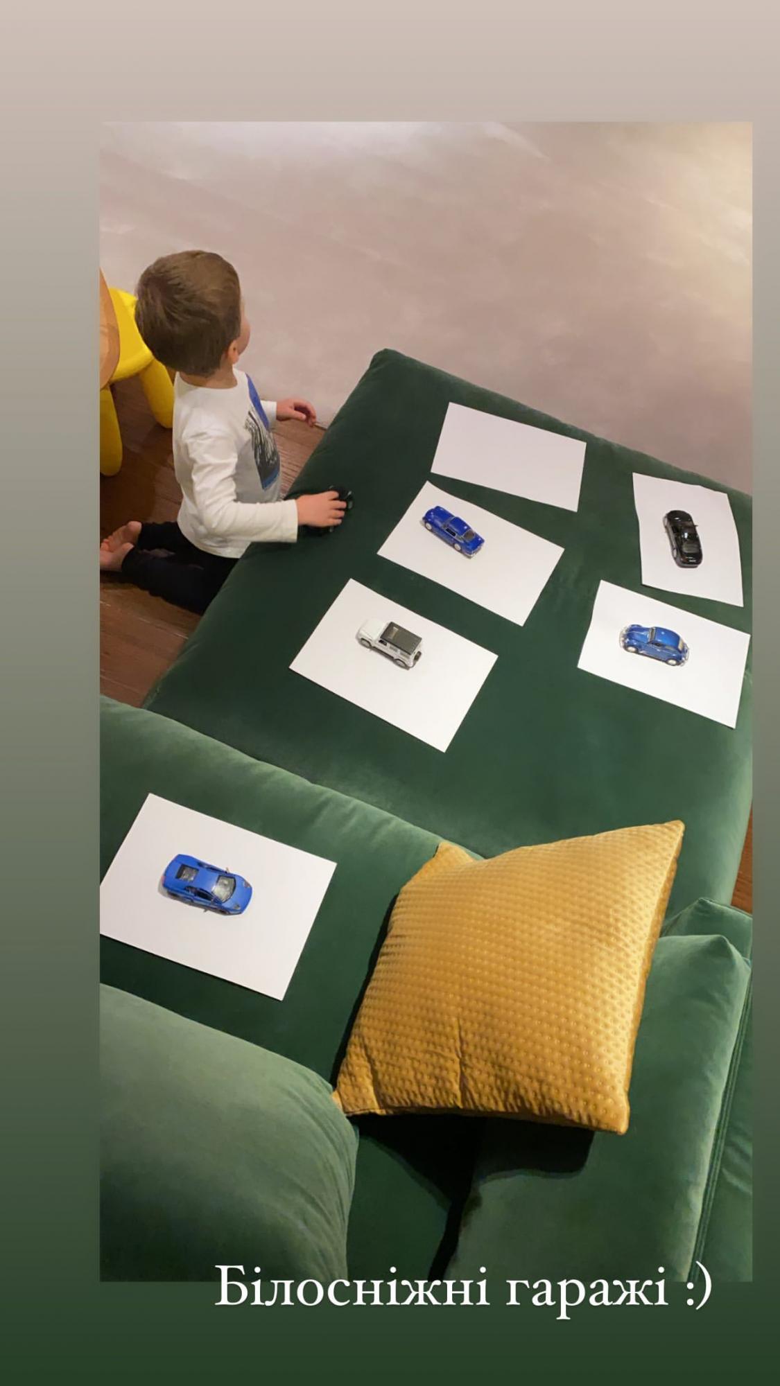 Иван сосредоточенно расставляет игрушечные машинки на стандартные листки А-4 – как оказалось, так выглядят "гаражи" для его авто. К слову, к транспортным средствам малыша неравнодушен и его папа, а также друг семьи Потап. Во время последнего визита в гости к ведущим, рэпер и шоумен увлеклись играми с машинками Вани и сами окунулись с головой в детство!