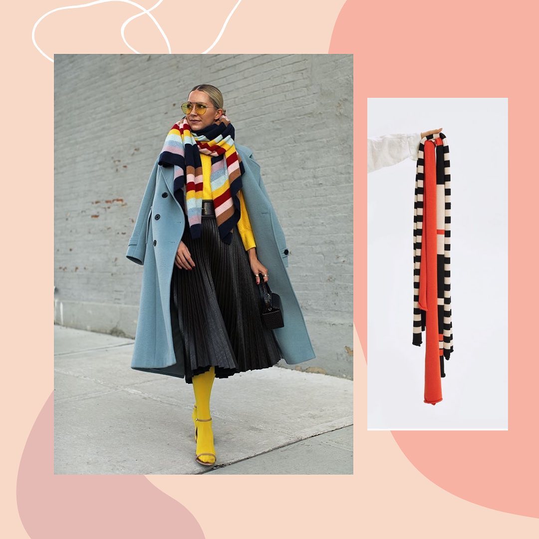 Многослойность. Прием, который многих бесит, у остальных вызывает восхищение. Зимой в наших краях незаменим, поскольку создает интересные сочетания и позволяет легко адаптироваться к обстоятельствам. Например, вы можете надеть рубашку, сверху худи, стеганый жилет/куртку и пальто. Капюшон худи будет виден из пальто, а остальные элементы усложнят образ. Сложные образы интересно рассматривать, они всегда в центре внимания; Повторяющийся цвет в образе. Например, одного цвета шапка и ботинки, сумка/шарф и носки, брюки и шапка. Важное условие: это должен быть выделяющийся акцент. Черный на черном не считается; Яркое цветное пятно в сдержанном образе. Огромный шерстяной шарф, яркая обувь, фактурная сумка — также притягивают внимание и делают простые комбинации более интересными; Шарф в полоску. Чаще всего, шарфы бывают в клетку. А вот полосатые — гораздо реже, потому интереснее. Его также можно скомбинировать с носками или сумкой, а можно сделать главным героем образа; Необычный головной убор. Предлагаю вам взглянуть на косынки: вязаные, стеганные и кожаные с байкой. Чтобы не получился бабуля-стайл, такой косынке нужна стильная компания из одежды и обуви актуальных фасонов.