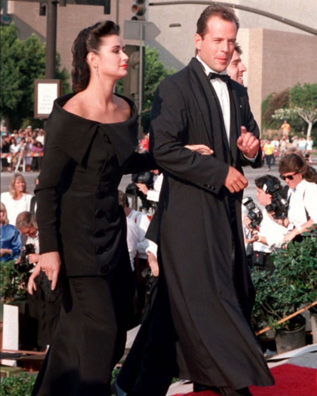 Актриса запостила архивное фото 1987-го года, на котором позирует вместе с экс-супругом. На снимке они отправились на церемонию вручения премии "Эмии". Деми в роскошном вечернем платье и Брюс в необычном смокинге смотрятся как всегда гармонично и стильно. "1987 "Эмми" прибывает в стиле", – сделала Мур короткую подпись.