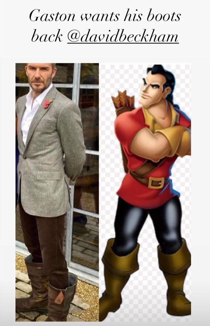 Но фанаты вместо комплиментов засыпали пару разочарованными комментариями. "Можем мы поговорить об этих ботинках?", "Почему все оверсайз? Длинные джинсы. Большие сапоги. Длинные рукава. Слишком большой воротник", "Двое прекрасных людей в ужасных нарядах. Серьезно. Нет", "Он что влез в обувь в последнюю минуту?", — не могут остановиться фанаты. Многие сравнили сапоги экс-футболиста с сапогами Гулливера и Гастона. Примечательно, что сама пара отреагировала на хейт весьма добродушно. Виктория запостила у себя мем, который позже опубликовал в своих сториз и Дэвид.
