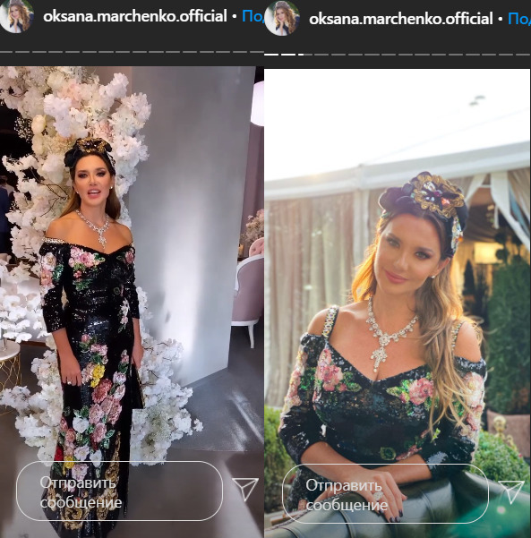 Судя по снимкам, свадьба молодых была роскошной. На столах виднеется дорогая посуда и множество цветов, а сама Марченко одета в дорогое платье.