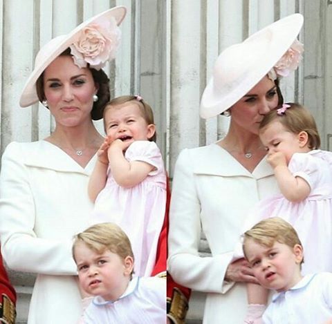 После публикации первых фото Кейт Миддлтон с детьми на параде пользователи сети отметили пугающее сходство: выход герцогини Кембриджской, и даже ее костюм во многом повторяют фото принцессы Дианы с сыновьями Уильямом и Гарри образца 1985 года на подобном мероприятии.