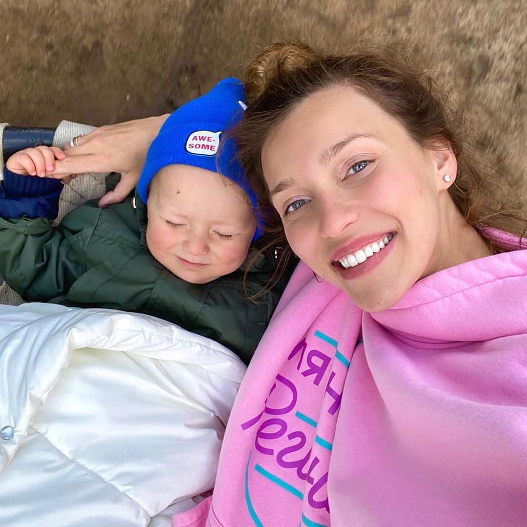На фото Тодоренко и ее сын запечатлены во время прогулки на улице — звездная мама прижалась к ребенку и обнимает его одной рукой, а тот спит, трогательно держась за мамин палец. На Регине — розовый худи, волосы она собрала в пучок и не стала делать макияж. Маленький Майкл заботливо одет в зеленую курточку и синюю шапку, а сверху накрыт белым одеялом.