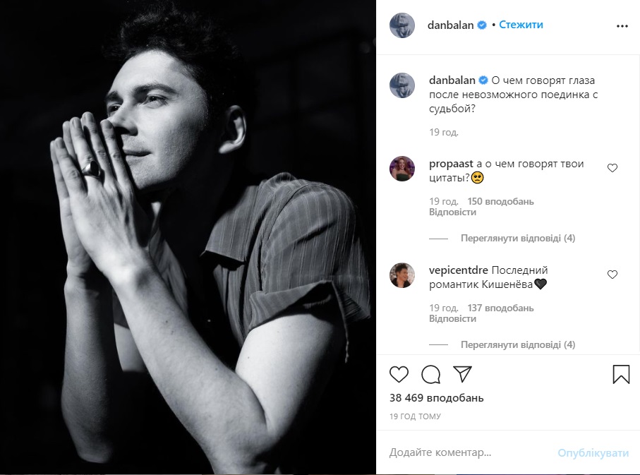 Дан Балан вызвал реакцию поклонников "Голоса країни" (скрин: instagram.com/danbalan)