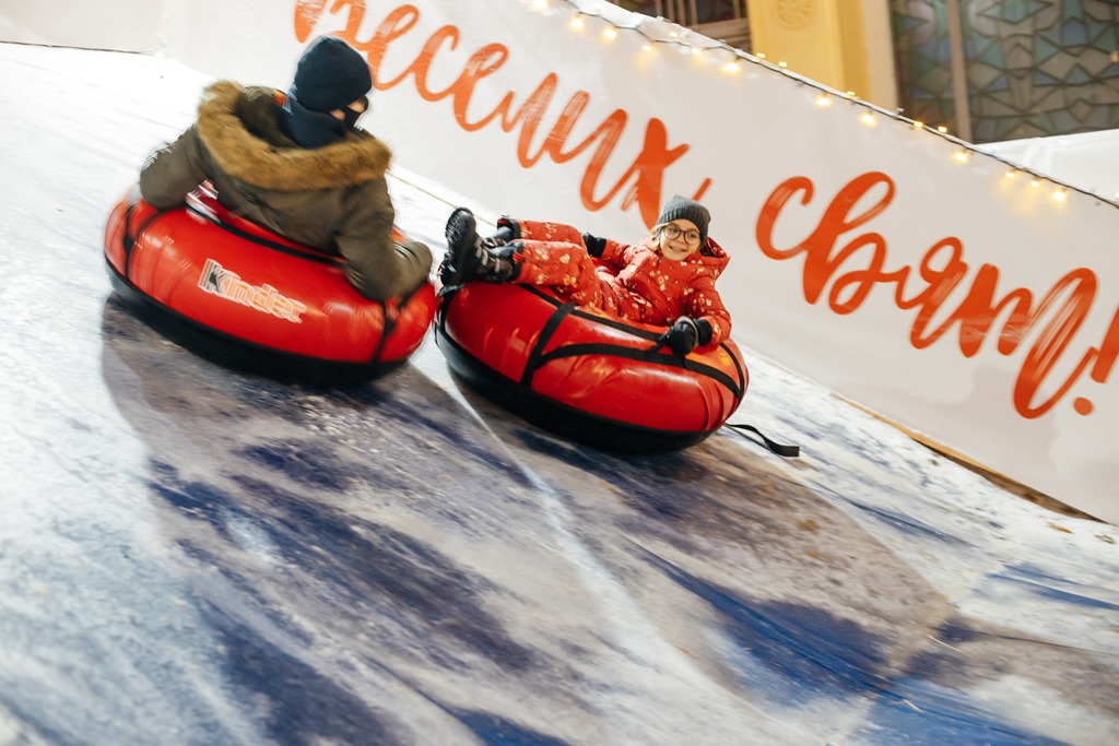 Вспомнить драйв, который чувствуешь в детстве, съезжая с крутого склона на санках, можно в зоне тюбинговых горок. К тому же спуск на надувных тюбах значительно мягче, а искусственное покрытие, которое здесь используют вместо снега, дает действительно мощное ускорение. На ВДНГ традиционно работают две горки — для детей (высота 4 метра) и для взрослых (высота 9 метров).