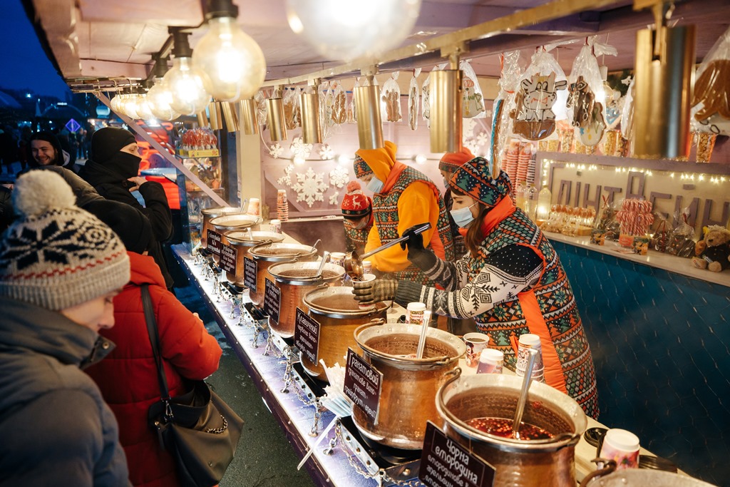 Рядом с катком предусмотрительно расположили уличную территория фудкортов с угощениями в формате to-go и широким выбором горячих напитков. Чтобы сразу нырнуть в праздничную атмосферу и согреться после катания, берите ароматный глинтвейн (есть и безалкогольные виды) или какао и отправляйтесь дальше исследовать территорию зимних развлечений.