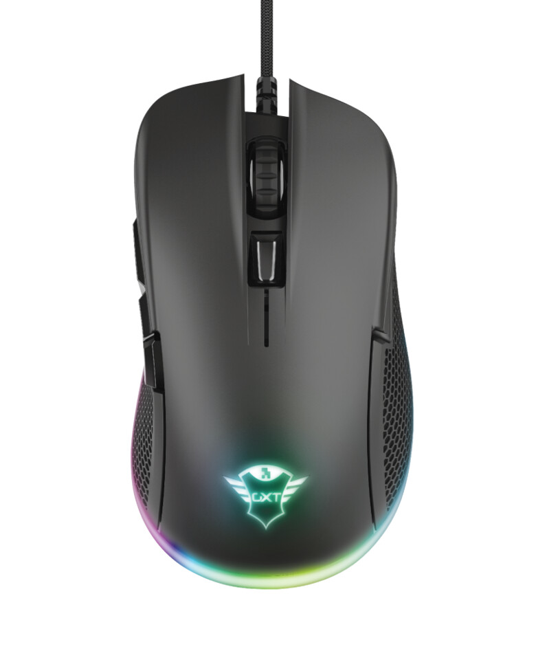Мышь Trust GXT 922 Ybar с оптическим датчиком и шестью кнопками тоже украшена светодиодной подсветкой RGB. Предусмотрено быстрое переключение чувствительности в диапазоне 200-7200 точек на дюйм. Форма устройства оптимизирована для хвата правой рукой. Рельефная текстура боковых поверхностей обеспечивает хорошее сцепление и комфорт при многочасовом использовании, а ножки с низким коэффициентом трения обеспечивают быстрое перемещение по любой поверхности. К компьютеру мышь подключается кабелем длиной 2,1 м в оплетке.